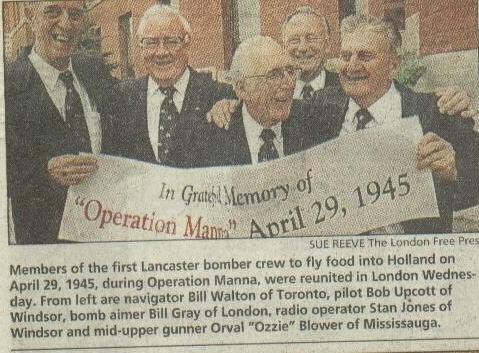 The first part of the mission had been a success, now we only had to follow the corridor back to the North Sea and we were on our way home. The second part of the mission didn't provide any problems. As soon as we had left the continent and were back over the Nord Sea, our radio operator transmitted the message to our base that the mission had been successful. Around noon that day the BBC broadcast the news that operation Manna was going to be effective the same day. Two hundred Lancasters would appear over Holland at two o'clock that day to bring their food to the starving population of Holland. The Dutch population reacted en mass on this news. When the Bombers flew over the Dutch landscape they were waved at by many civilians.