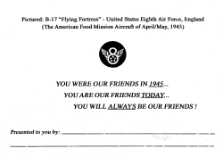 'As a remembrance to that magnificent operation "Manna", Food from the air for the starving Dutch in the west of Holland. Really "Manna from Heaven" for the Dutch, which will never be forgotten by them and the crews who flew on those mercy missions from the 29th of April to the 8th of May 1945'